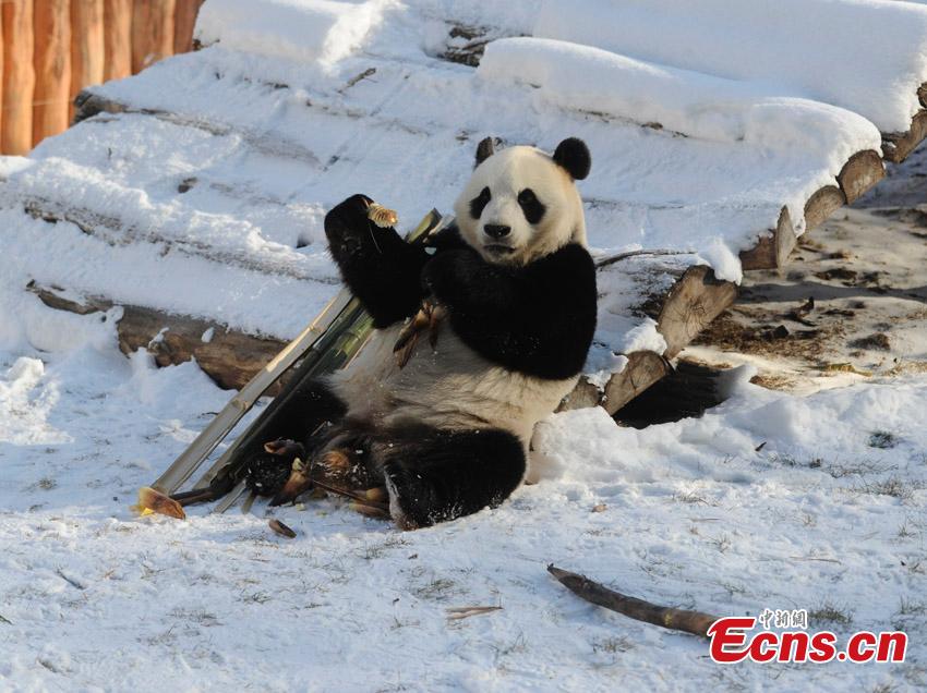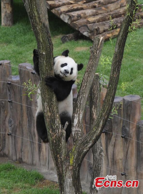 File photo of one of two giant pandas given new homes in Jilin Province in 2015. Jiajia and Mengmeng were the first giant pandas to live in a high-altitude habitat in China after they were moved from Sichuan to the Jilin Wild Life Rescue and Breeding Center in Changchun in 2015. Over the past three years, the two pandas have adapted to the new environment in Changchun. They have now been transported to Dujiangyan base in Sichuan province for a breeding project next year. (Photo: China News Service/Zhang Yao)