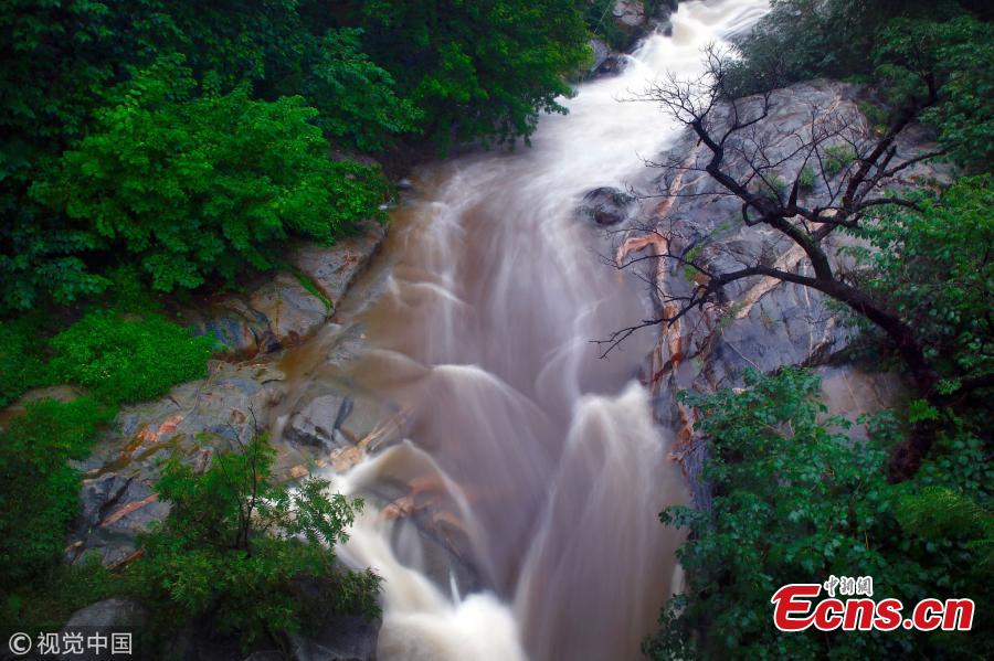 Days of rainfall have created amazing water landscapes on Mount Tai, a UNESCO World Heritage site known as the eastern mountain of the Five Great Mountains of China, attracting visitors keen to view the waterfalls and streams. (Photo/VCG)