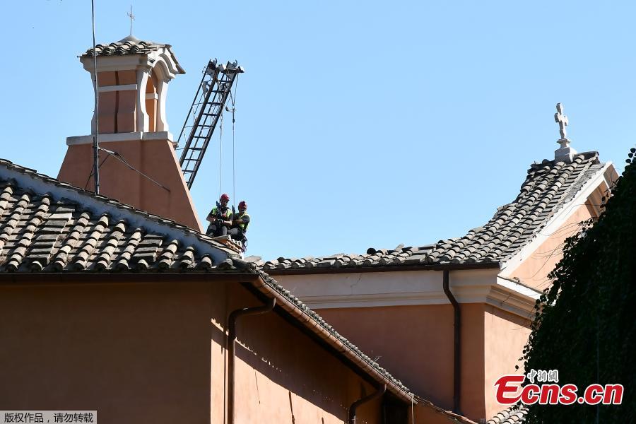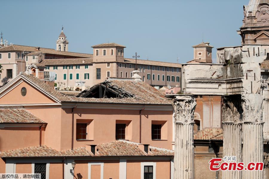 A part of the collapsed roof of the San Giuseppe dei Falegnami church is seen in Rome, Italy, Aug. 30, 2018. The church was closed to the public at the time and is normally open only for marriage ceremonies, but dogs were brought in to sniff through the rubble to make certain no one had been buried, the fire department said. (Photo/Agencies)