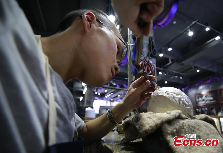 People visit Yang Changgan's studio in Zhangjiajie City, Central China’s Hunan Province, Sept. 5, 2018. Yang, born in 1986 in Guizhou Province, was exposed to the craft of silverwork from an early age. After completing his bachelor’s degree at Nanchang Institute of Technology in 2010, he learned with Yang Guangbin, a master crafter of the silver ornaments of the Miao people. He then opened his own studio in Zhangjiajie in 2015, mainly developing silver pot products. Yang said it takes 10-15 days to make a silver pot as the process involves nearly 100 steps, including pounding, refining and wielding. Yang said his creations sell well in nearly 20 countries and regions. (Photo: China News Service/Wu Yongbing)