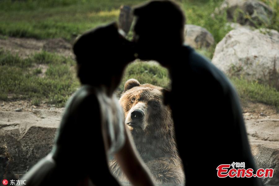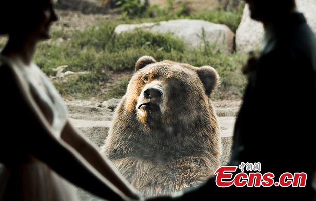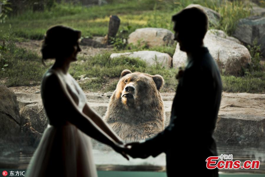 A bear witnessed a couple's wedding — and was apparently less than pleased by the experience. The couple tied the knot at the Minnesota Zoo in Apple Valley and got to take photos inside the facility, with a Russian grizzly bear in the background. While the smitten couple held hands and exchanged a kiss, the bear pulled a series of hilarious faces, making it look as though it was completely heartbroken by the scene unfolding before its eyes. (Photo/IC)