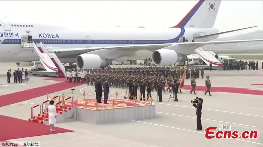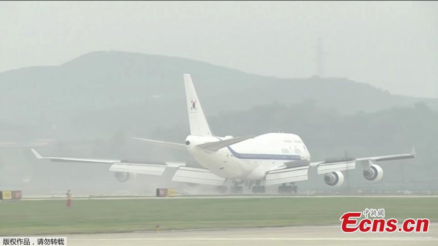 In this image made from video, South Korean President Moon Jae-in arrives in Pyongyang, DPRK, Sept. 18, 2018. Moon landed in Pyongyang for his third summit this year with Kim. (Photo/Agencies)