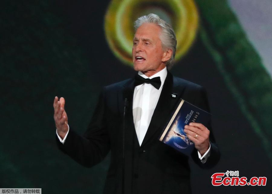 Michael Douglas presents the award for outstanding lead actor in a comedy series at the 70th Primetime Emmy Awards, Sept. 17, 2018, at the Microsoft Theater in Los Angeles. (Photo/Agencies)