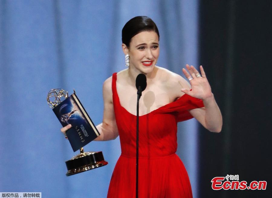 Rachel Brosnahan winner of the award for outstanding lead actress in a comedy series for "The Marvelous Mrs. Maisel" poses in the press room at the 70th Primetime Emmy Awards, Sept. 17, 2018, at the Microsoft Theater in Los Angeles. (Photo/Agencies)