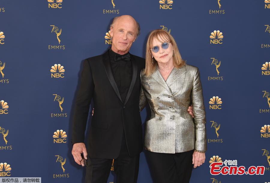 Ed Harris, left, and Amy Madigan arrive at the 70th Primetime Emmy Awards, Sept. 17, 2018, at the Microsoft Theater in Los Angeles. (Photo/Agencies)