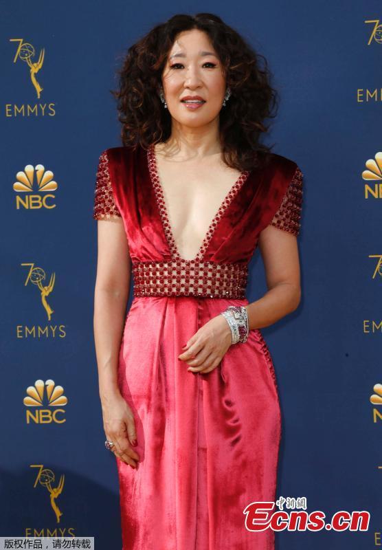 Sandra Oh arrives at the 70th Primetime Emmy Awards, Sept. 17, 2018, at the Microsoft Theater in Los Angeles. (Photo/Agencies)