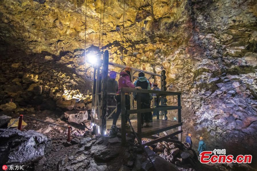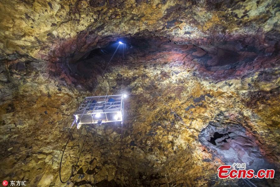 Florian Ledoux, 29, captured the images in an old magma chamber of an extinct Icelandic volcano called Thrihnukagigur. The photographer described the magical results of the eruption, which spread different-colored minerals on the cave’s walls, as a ‘jewel of Earth’. The magma chamber is often referred to as the heart of a volcano. (Photo/IC)