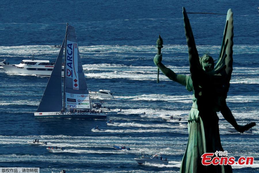 Spirit of Portopiccolo sailing boat leads during the Barcolana regatta in front of the Trieste harbour, Italy, Oct. 14, 2018. The annual Barcolana regatta, one of the largest sailing races in the world, takes place on the second Sunday in October and began in 1969. (Photo/Agencies)