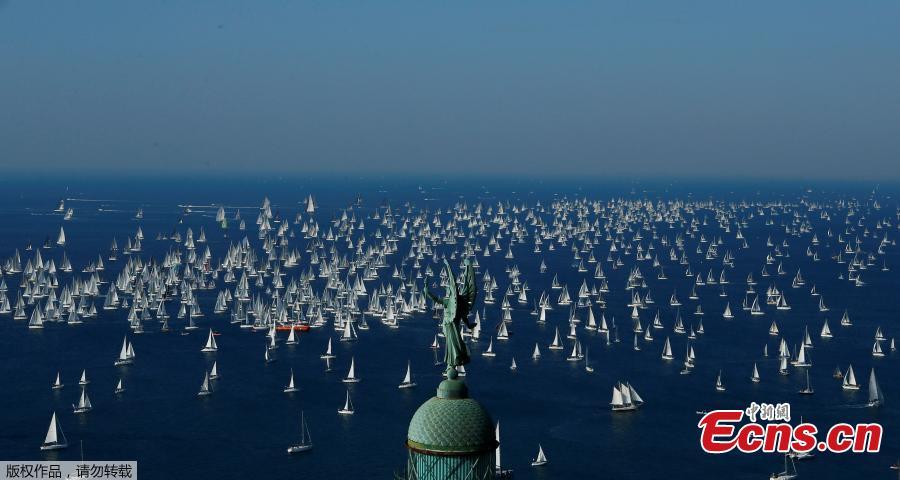 Sailboats gather during the Barcolana regatta in front of the Trieste harbour, Italy, Oct. 14, 2018. The annual Barcolana regatta, one of the largest sailing races in the world, takes place on the second Sunday in October and began in 1969. (Photo/Agencies)