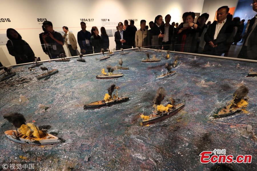 An exhibition on the Zhiyuan, a warship sunk by the Japanese navy in 1894 in the Battle of the Yellow Sea during the Sino-Japanese War, opens at the China Port Museum in Ningbo City, East China’s Zhejiang Province, Oct. 17, 2018. The exhibition shows the warship’s history and the discovery of the shipwreck near Dandong Port in Northeast China. (Photo/VCG)