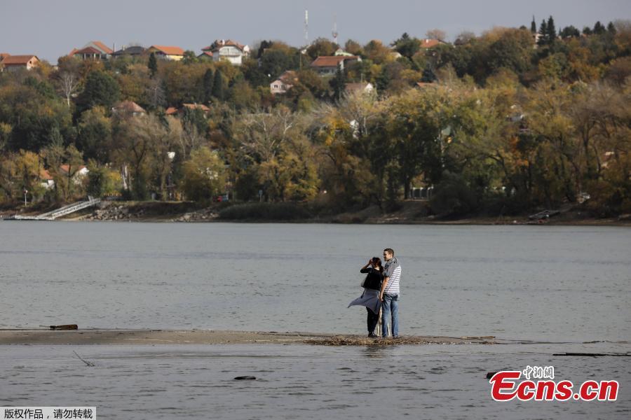 A couple stands on sandbanks which emerged amid Danube River's lowest water levels this year, in Novi Sad, Serbia, October 30, 2018. Picture taken October 30, 2018. (Photo/Agencies)