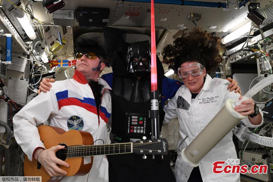 International Space Station (ISS) crew members Serena Aunon-Chancellor of the U.S, Alexander Gerst of Germany and Sergey Prokopyev of Russia mark Halloween in this photo released November 1, 2018. (Photo/Agencies)