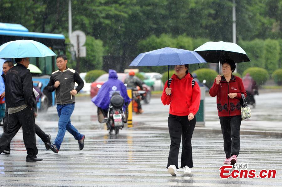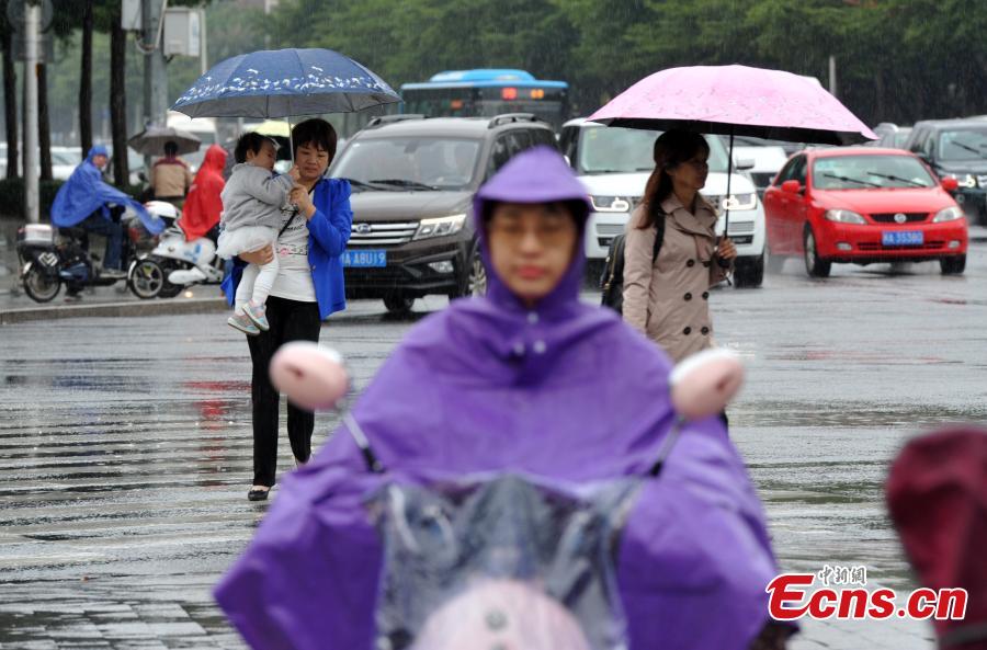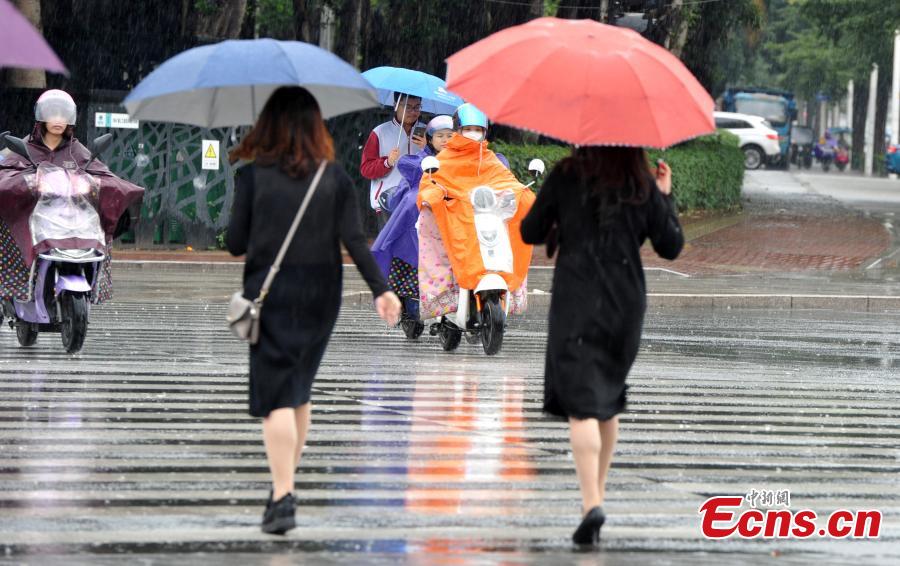 People walk in rain in Fuzhou, southeast China's Fujian province on November 2, 2018. According to the provincial meteorological center, as of 5 a.m., Yutu was located about 355 kilometers ofthe coast of Fujian's Dongshan county. (Photo: China News Service/ Zhang Bin)