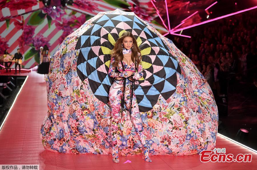 Gigi Hadid walks the runway during the 2018 Victoria's Secret Fashion Show at Pier 94 on Thursday, Nov. 8, 2018, in New York. Every year, the Victoria's Secret show brings its famous models together for what is consistently a glittery catwalk extravaganza. It's the most-watched fashion event of the year (800 million tune in annually) with around $12 million spent on putting the spectacle together according to Harper's Bazaar. (Photo /Agencies)
