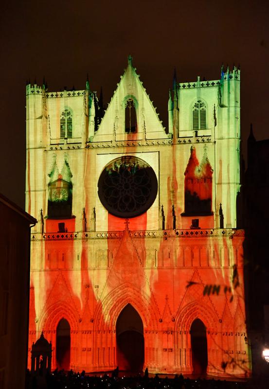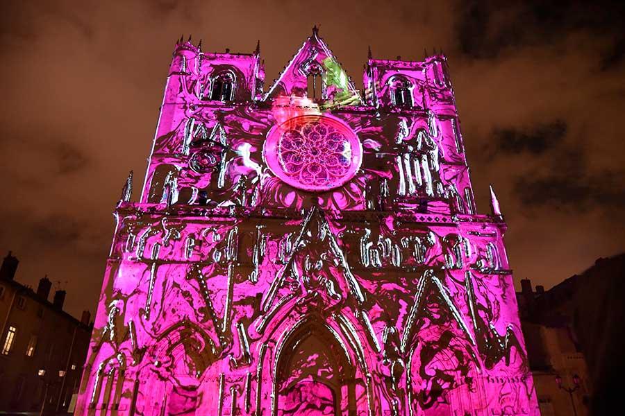 The Saint Jean Cathedral in Lyon is the major site for the light festival. The church has been decorated with amazing colors and patterns that last around eight minutes in celebration of the annual Lyon Festival of Lights on Dec. 9, 2018. (Photo/chinadaily.om.cn)