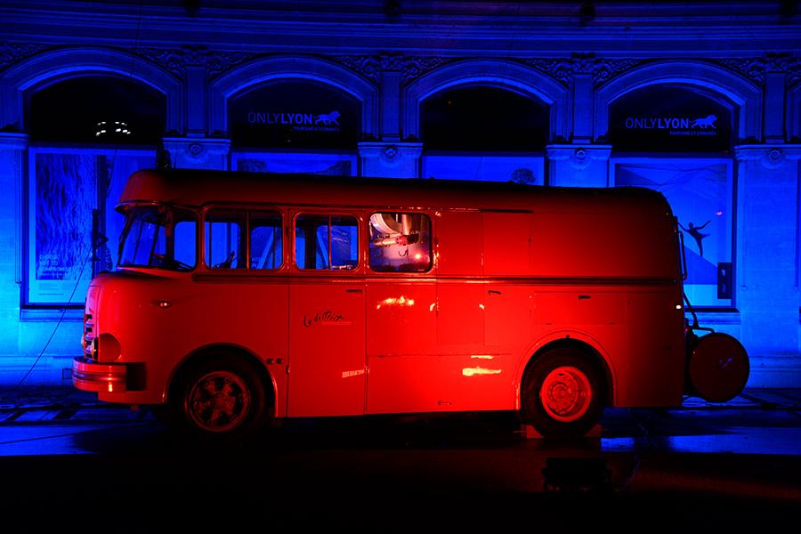 A red mini-bus seems to glow against the blue background on the Place Bellecour in Lyon, France. (Photo/chinadaily.om.cn)
