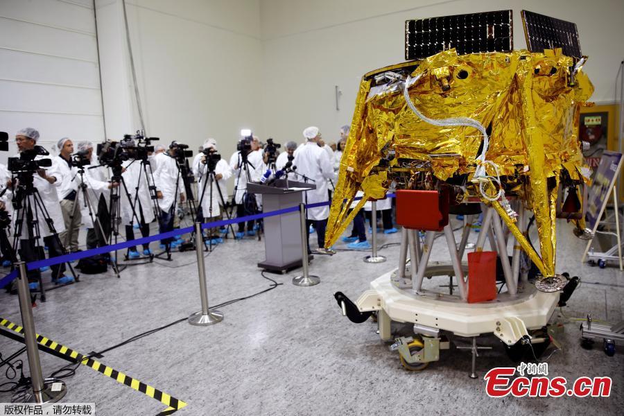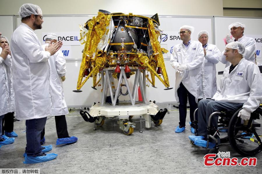 An unmanned spacecraft is seen during a presentation to the media by members of Israeli non-profit group SpaceIL and representatives from Israel Aerospace Industries (IAI), at the clean room of IAI's space division in Yehud, Israel, Dec. 17, 2018. (Photo/Agencies)
