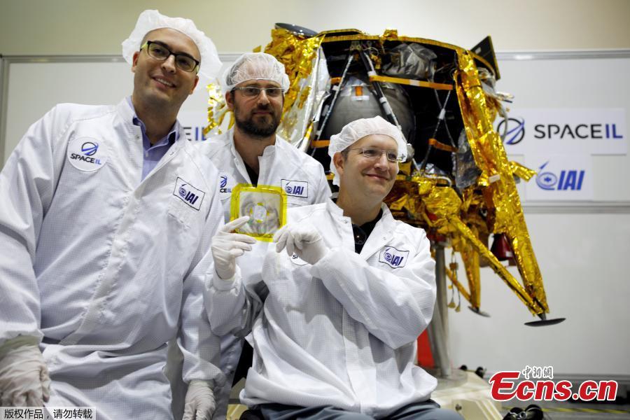 A time capsule, intended to travel to the moon with an unmanned spacecraft in early 2019, is seen during a presentation to the media by members of Israeli non-profit group SpaceIL and representatives from Israel Aerospace Industries (IAI), at the clean room of IAI's space division in Yehud, Israel, Dec. 17, 2018. (Photo/Agencies)