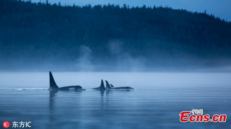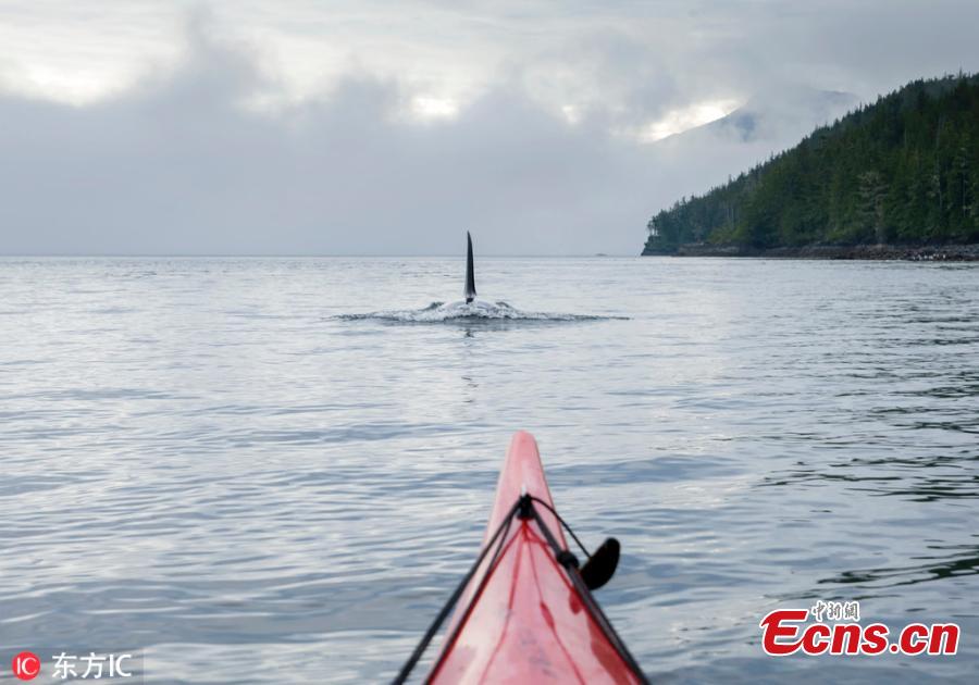 Kayakers were stunned to have an incredibly close encounter with two killer whales while out on the water. Photography guide Steven Rose, 62, filmed the amazing scenes in the Johnstone Strait, south of Telegraph Cove in Vancouver Island, British Colombia, earlier this year. Steven, 62, from Toronto, was kayaking with his daughter when the majestic orcas - which were hunting salmon - swam under their vessels. (Photo/IC)