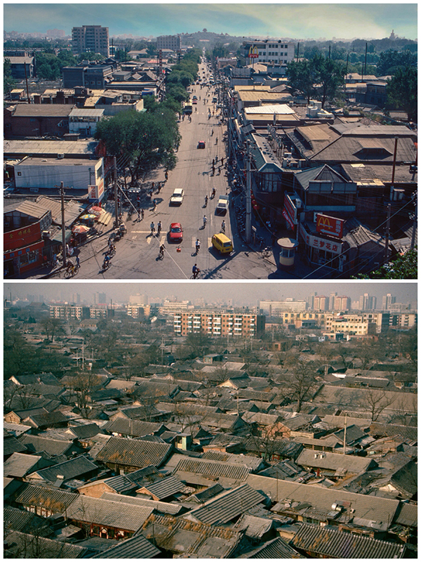 Dianmen Bei Dajie 1998. Courtyard roofs 1996. Both from the Drum Tower. (Photo/chinadaily.com.cn)
