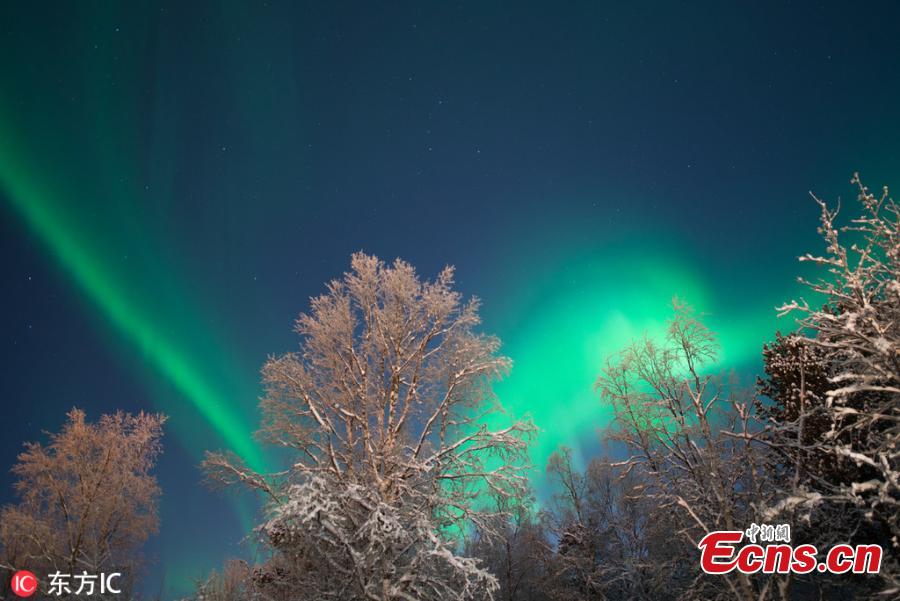 Photographer Mia Stalnacke captures spectacular views of the northern lights in Kiruna, Sweden, as temperatures dropped to minus 20 degrees. (Photo/IC)