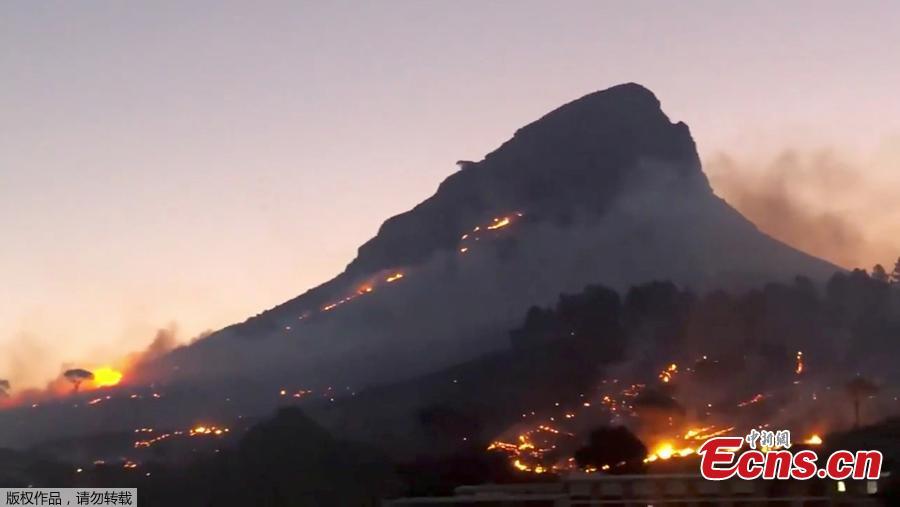 Smoke rises from a burning mountainside in Cape Town, South Africa, January 27, 2019, in this picture obtained from social media. (Photo/Agencies)
