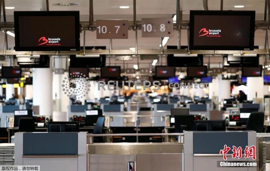 Photo shows empty desks desks at departure hall during a strike by Belgian trade unions at Zaventem international airport in Brussels, Belgium, Feb. 13, 2019. All flights in and out of Belgium have been cancelled for a day due to strike action, the country's air traffic control has announced on Tuesday. (Photo/Agencies)
