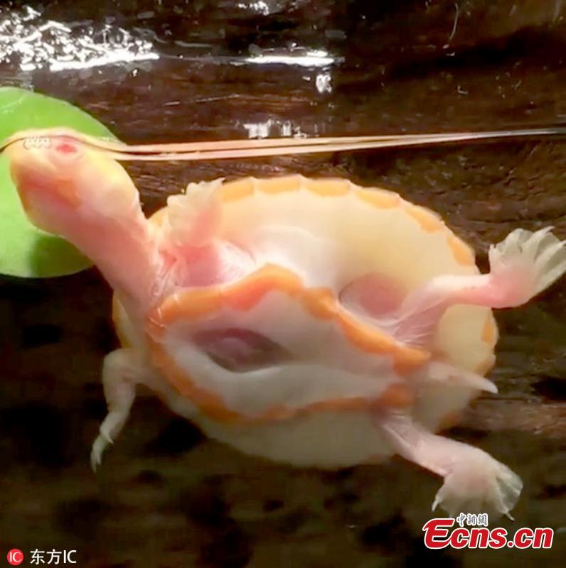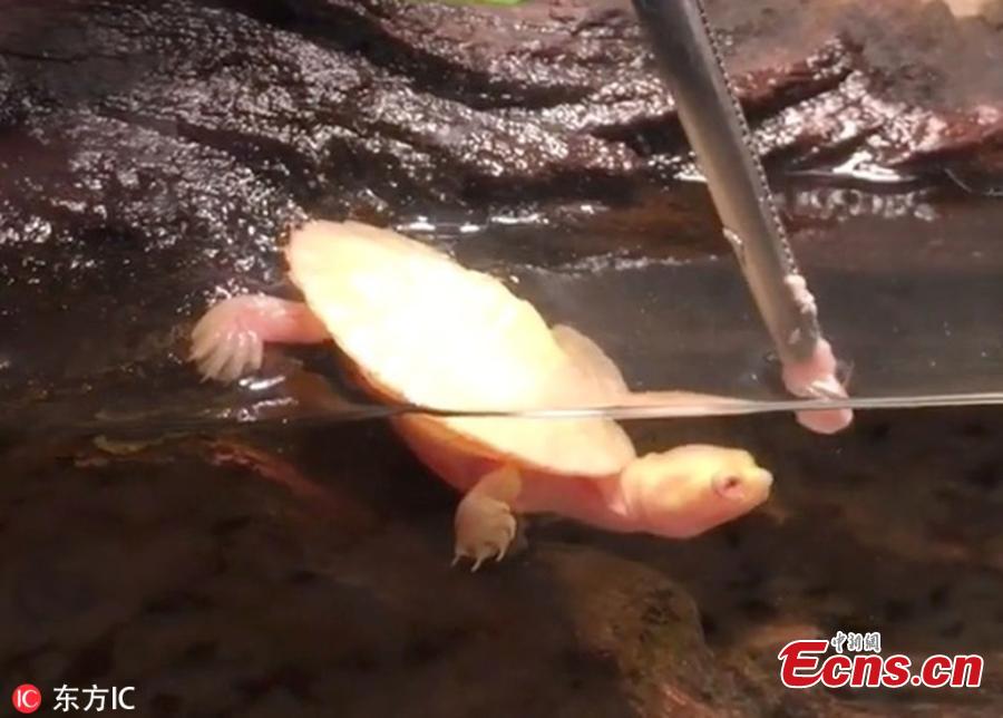 An adorable albino turtle, called Hope, has gone viral because its heart beats out of its chest. Hope lives with her owner Michael Aquilina in New Jersey, U.S. "Hope has impacted my life in so many ways it actually makes me emotional," he said. (Photo/IC)