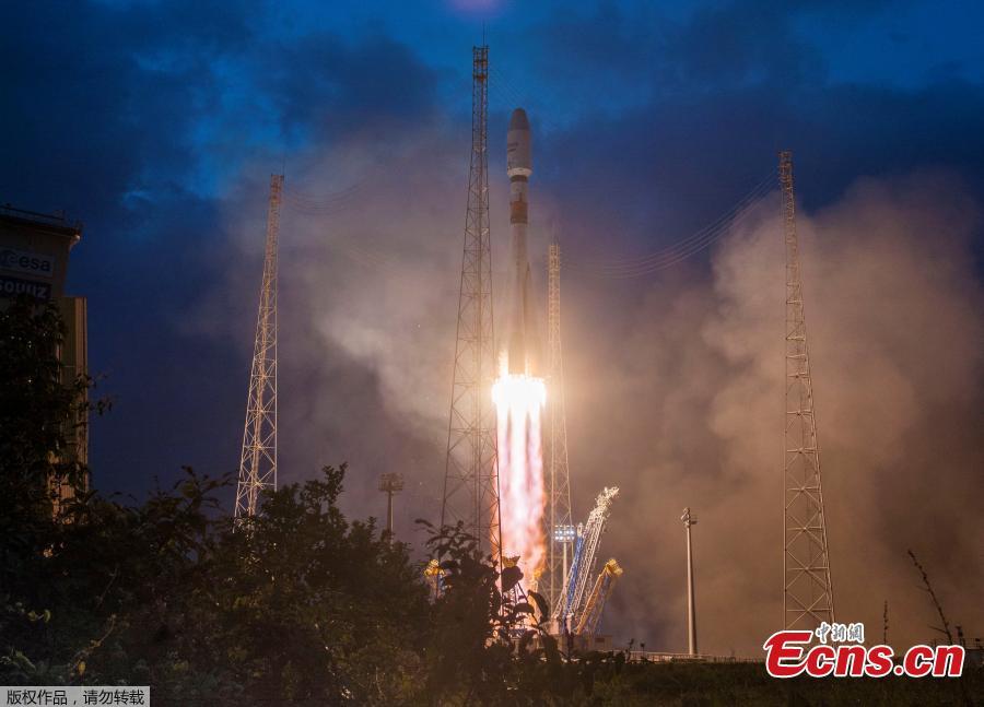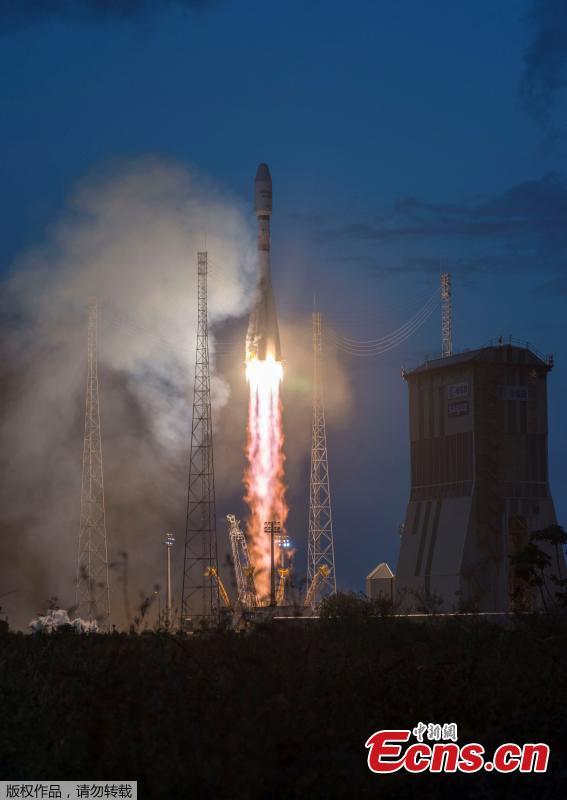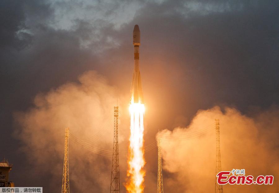 A Soyuz ST-B rocket lifted off from the Guiana Space Center with the first six OneWeb broadband satellites, Feb. 27, 2019. Arianespace, the French launch services provider declared success on the mission. The satellites launched will help OneWeb secure the Ku-band radio spectrum the network will use for global broadband services. (Photo/Agencies)