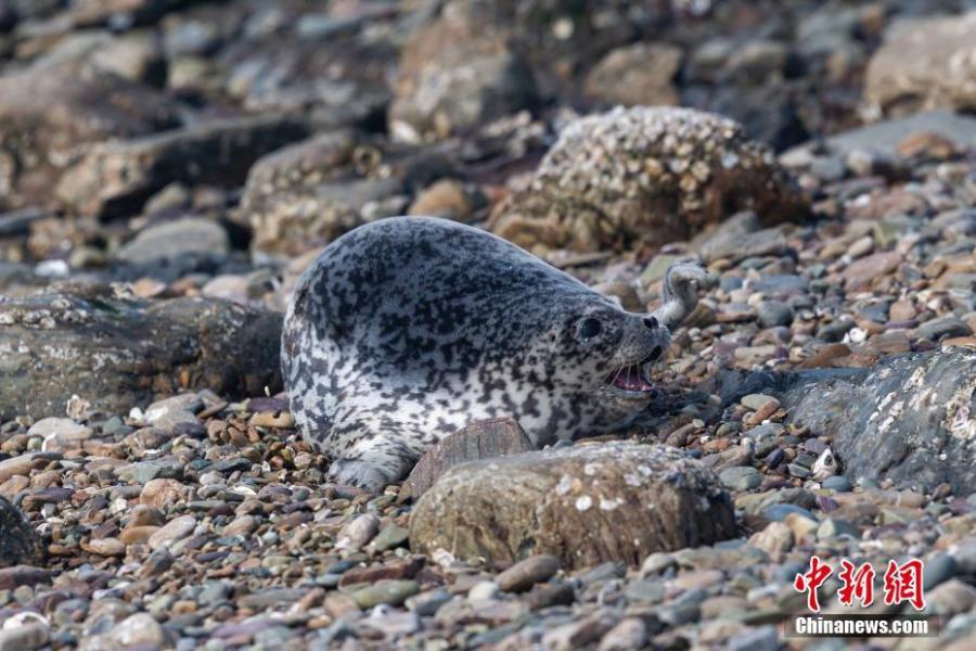Baby spotted seals on a beach on Huping Island in Dalian City, Northeast China's Liaoning Province. Approximately 160-280 spotted seals live in the area's waters, a sign the natural environment is a healthy one. (Photo: China News Service/Bian Zhidong)