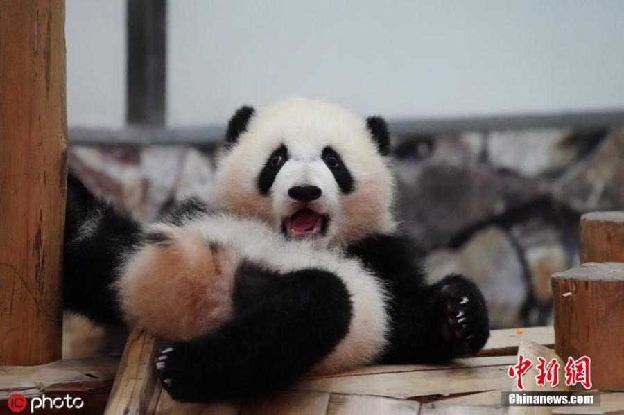 Giant panda Rauhin and her female cub Saihin, born last August, play at Adventure World in Shirahama, Wakayama Prefecture, Japan. The name "Saihin" means "making life colorful" in Japanese. (Photo/IC)