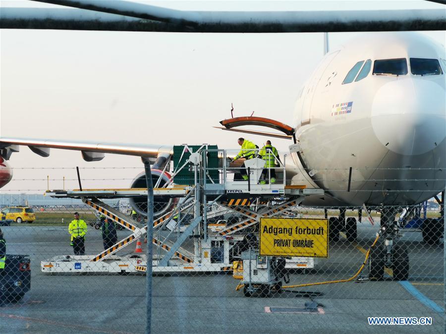 Xing Er and Mao Er, two giant pandas from China, are unloaded from a cargo plane at Kastrup airport in Copenhagen, Denmark, on April 4, 2019. After arriving in Copenhagen on Thursday, the pair of giant pandas Xing Er, a 5-year-old male, and Mao Er, a 4-year-old female, will head to their new home in Copenhagen Zoo for collaborative research. They will live in Denmark for 15 years, according to the agreement signed between the Chinese Association of Zoological Gardens and the zoo in 2017. (Xinhua/Li Pengfei)