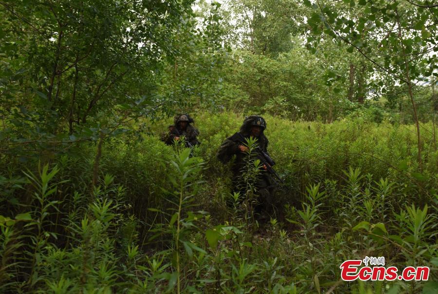 Armed police snipers undergo training in an open field in Anhui Province, June 25, 2019. (Photo: China News Service/Xu Wei)