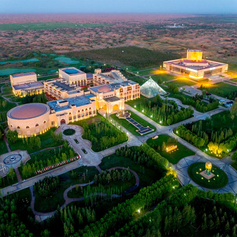 A palatial hotel at Qixing Lake Resort adds glamor to the Kubuqi Desert in North China's Inner Mongolia autonomous region. (Photo provided to chinadaily.com.cn)