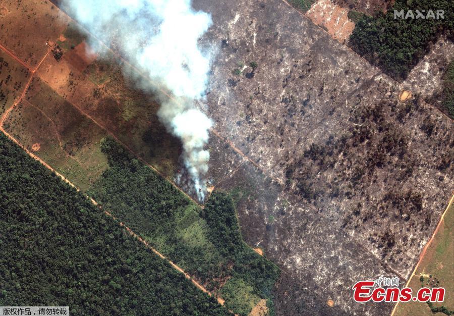 A satellite image shows smoke rising from Amazon rainforest fires and cleared land in the State of Rondonia, just southwest of Porto Velho, Brazil in the upper Amazon River basin on August 15, 2019. (Photo/Agencies)