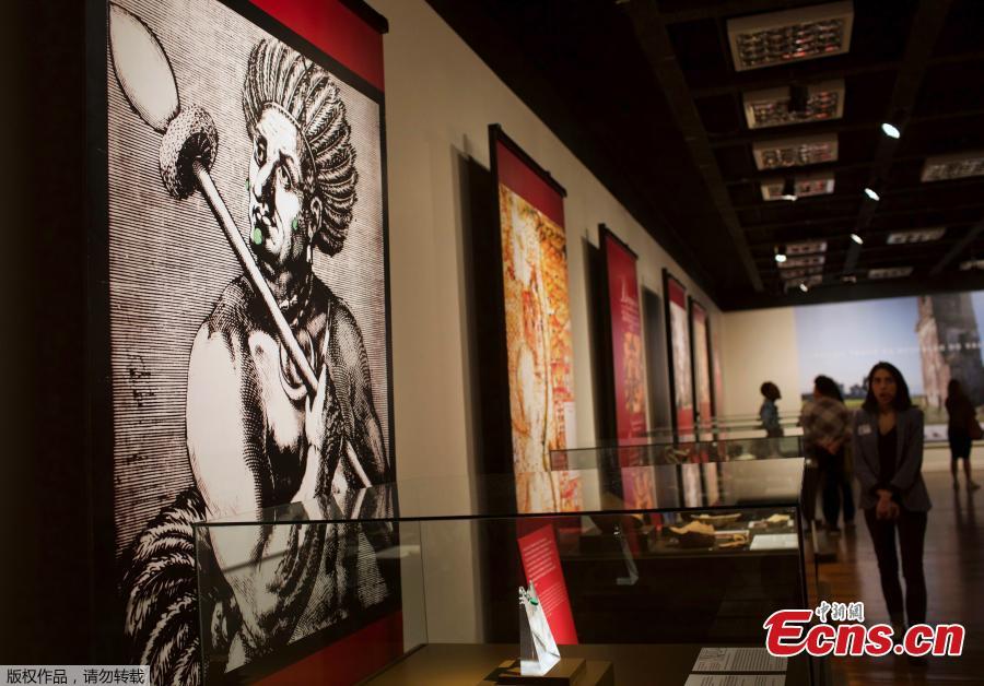 People visit an exhibit titled "Santo Antonio de Sa, Primeira Vila do Reconcavo da Guanabara," organized by the Brazil National Museum, which was destroyed one year ago by a fire, at the Caixa Cultural in Rio de Janeiro, Brazil, Monday, Sept. 2, 2019. One year after Brazil's National Museum went up in flames, management and researchers say they are recuperating 35% of the collection and are beginning reconstruction of the building's facade and roof. (Photo/Agencies)