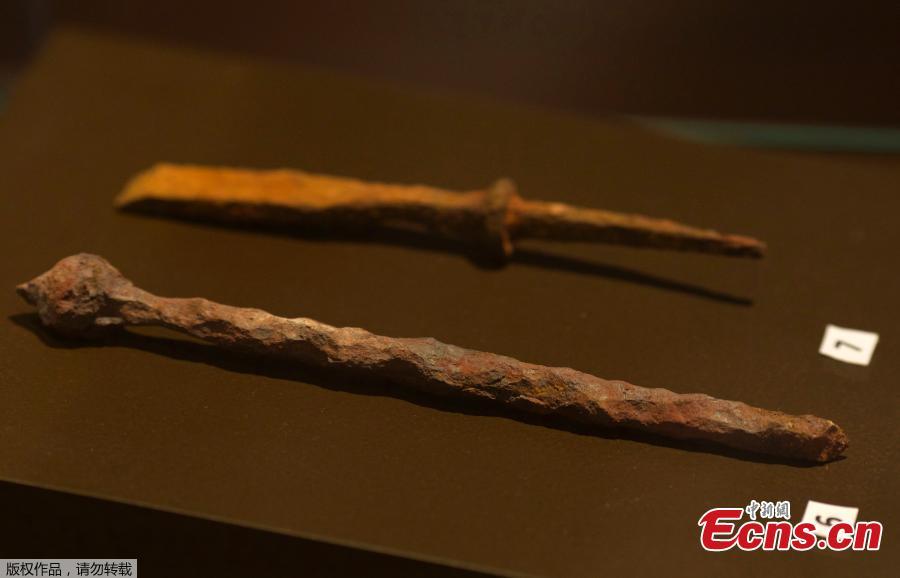Iron tools that were recovered from a fire one year ago at the Brazil National Museum are displayed at an exhibit titled "Santo Antonio de Sa, Primeira Vila do Reconcavo da Guanabara" at the Caixa Cultural in Rio de Janeiro, Brazil, Monday, Sept. 2, 2019. On the anniversary of the fire, the National Museum opened a new exhibition on Monday in a partner institution with some artifacts that were recovered from the fire. (Photo/Agencies)