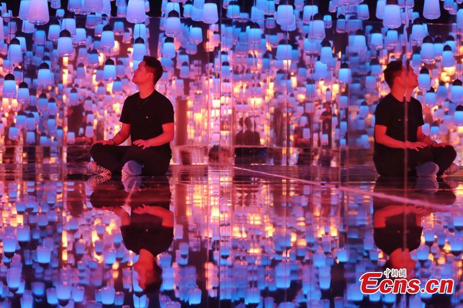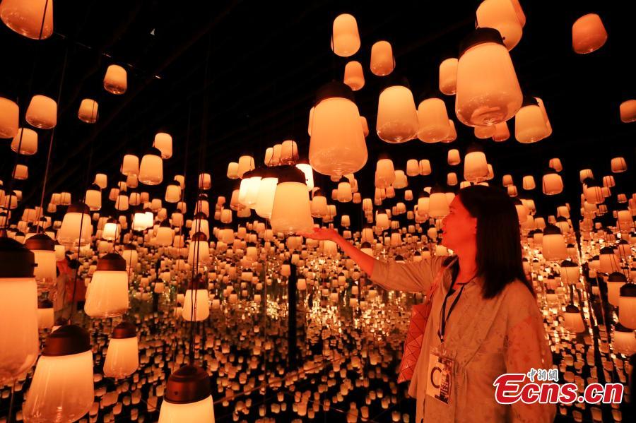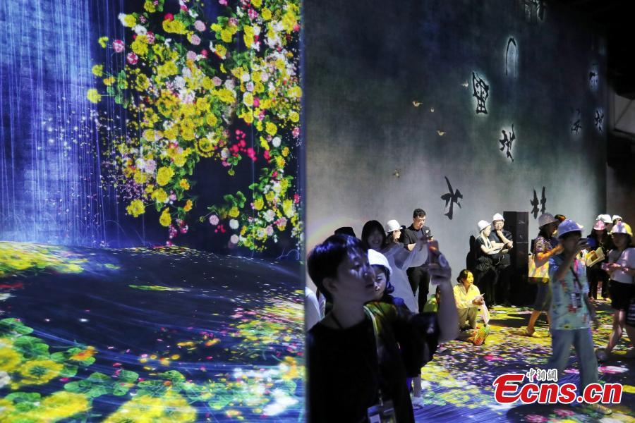 Visitors are immersed in an preview exhibition at the teamLab Borderless Shanghai art museum on Sept. 11, 2019. The digital art group is opening a museum in Shanghai in November following its first in Tokyo that opened in 2018 and proved hugely popular. (Photo: China News Service/Zhang Hengwei)