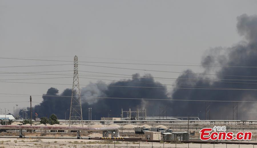 Smoke is seen following a fire at Aramco facility in the eastern city of Abqaiq, Saudi Arabia, September 14, 2019. (Photo/Agencies)