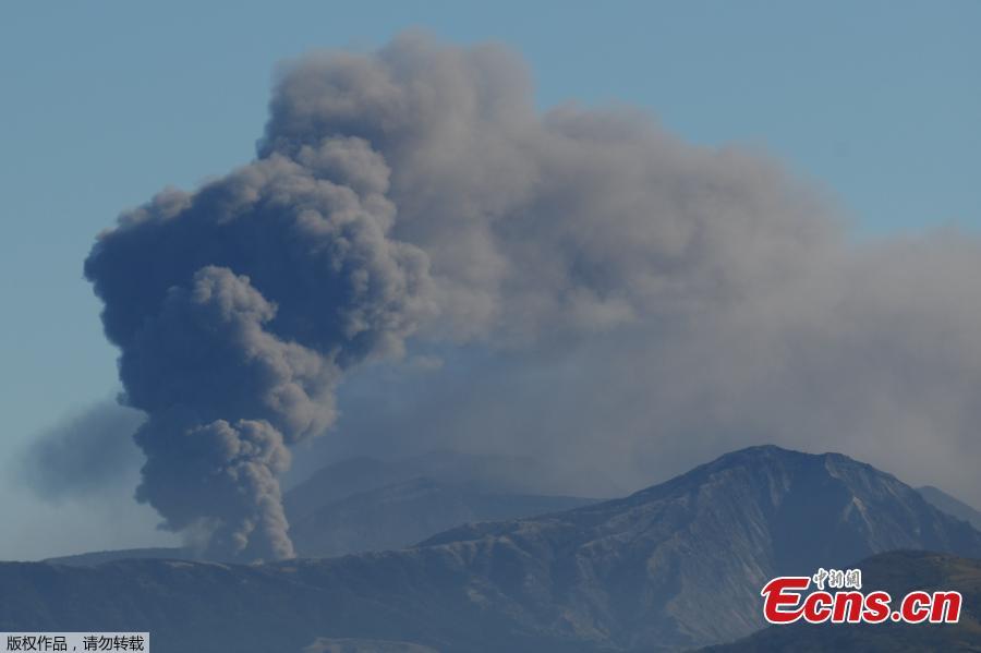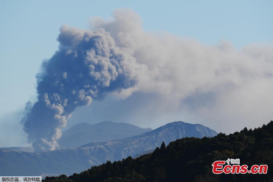 Smoke rises from Mount Aso, an active volcano, near the city of Aso in Kumamoto prefecture on December 13, 2019. Mount Aso's huge caldera dominates the southwestern main island of Kyushu, where the 1,592-metre volcano is a popular tourist spot. (Photo/Agencies)