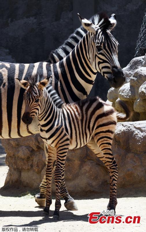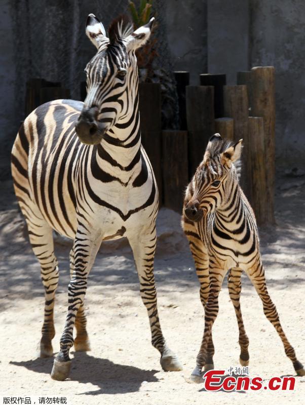 A 10-day zebra foal is seen with its mother at the San Jorge Zoo in the Valle de Juarez, in the state of Chihuahua, Mexico, on May 5, 2020.(Photo/Agencies)