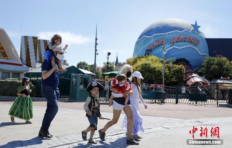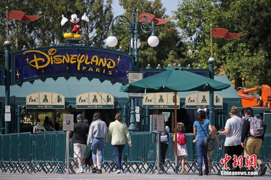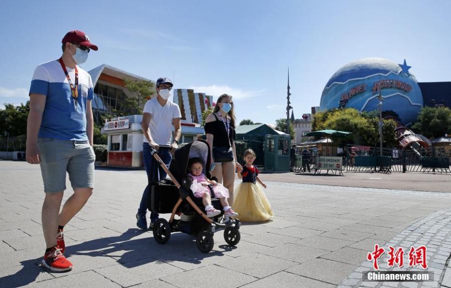 Visitors, wearing face masks are seen at the Disneyland theme park in Paris, France, July 13, 2020. With masks mandatory and advance booking required, Magic Kingdom and Animal Kingdom opens first on July 11. Disneyland Paris will reopen from July 15 after a four-month closure due to the coronavirus crisis. (Photo/VCG)