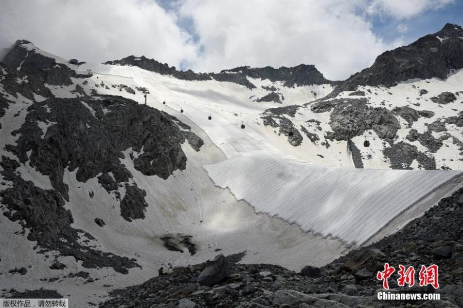 Large white geotextile sheets are seen covering northern Italy's Presena glacier in order to delay snow melting on skiing slopes and reflect sunlight during summer months, at Passo del Tonale, near Trento, Italy July 13, 2020. (Photo/Agencies)