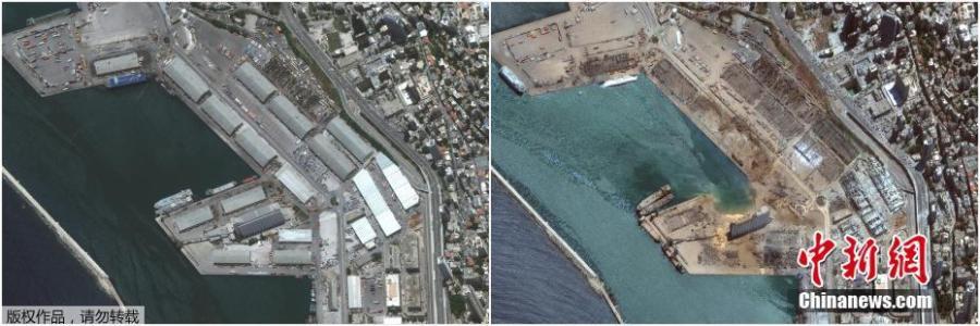 A series of satellite images show the port of Beirutt, Lebanon, before and after the blast. A massive explosion rocked Beirut on Tuesday, killing at least 135 people and injuring over 4,000. Hundreds have been reported missing, raising fears that the death toll will rise. (Photo/Agencies)