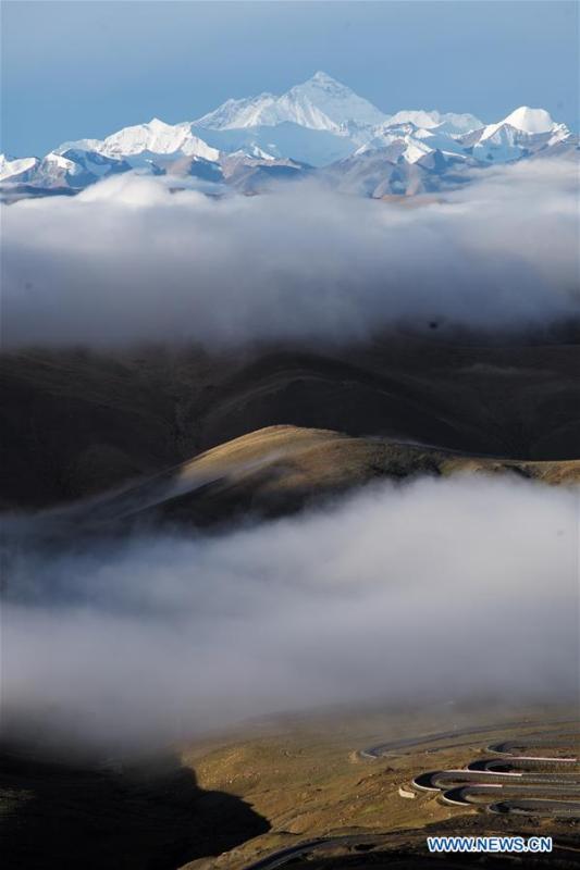 Photo taken on Sept. 5, 2020 shows clouds swirl around Mount Qomolangma. (Xinhua/Lyu Shuai)