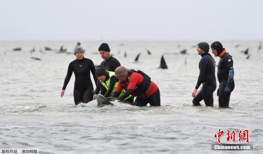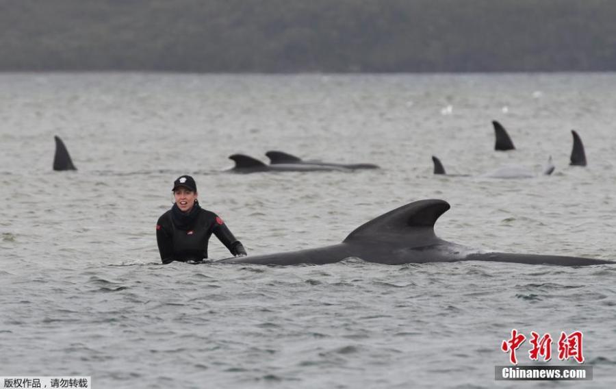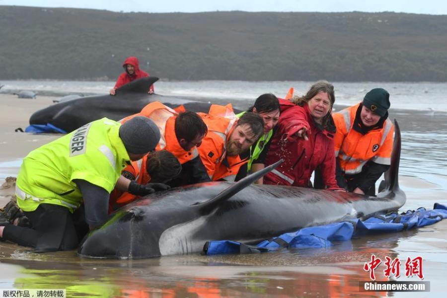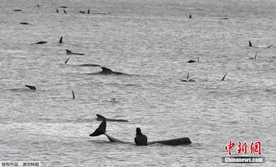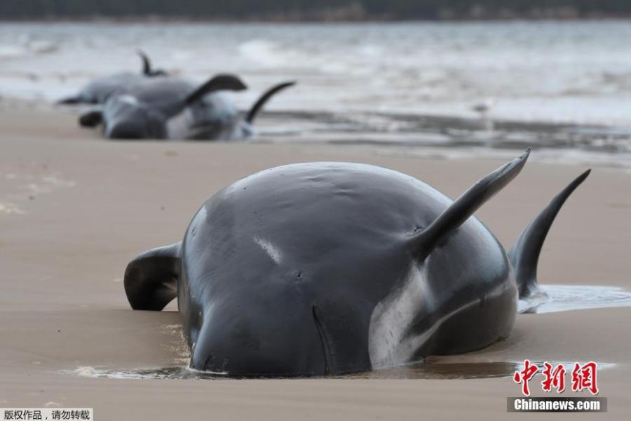 The Australian state of Tasmania has recorded its largest-ever stranding of whales, after more were found beached during a large rescue effort. Since Monday, an estimated 470 pilot whales have been discovered stranded on Tasmania's west coast.(Photo/Agencies)