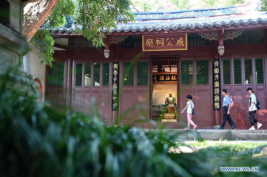 Tourists visit an ancestral temple at the Yushan scenic spot in Fuzhou, southeast China's Fujian Province, Oct. 8, 2020. (Xinhua/Lin Shanchuan)