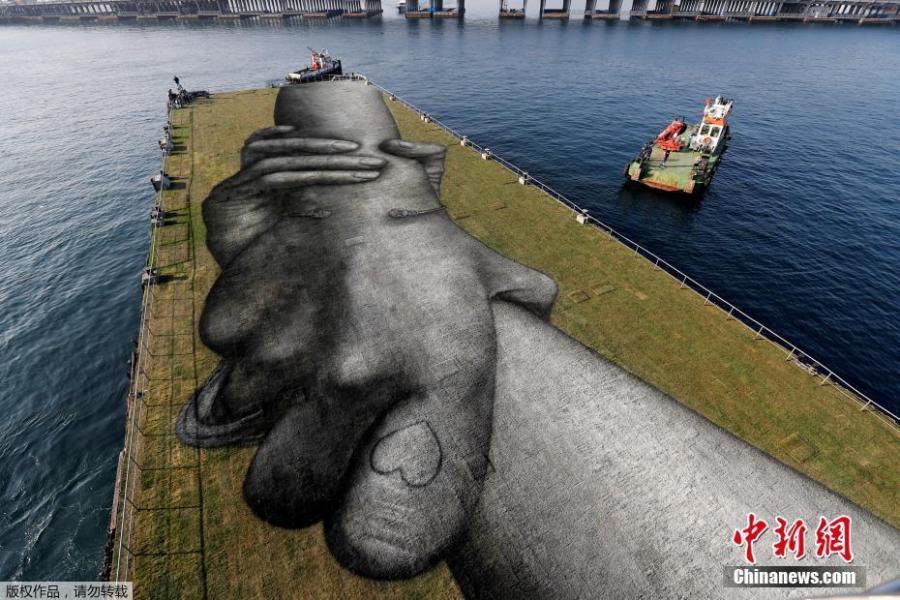 Painting of gigantic hands holding each other has been drawn on open-air green fields in Turkey's Istanbul by a French artist to show values of goodwill, optimism, and togetherness.