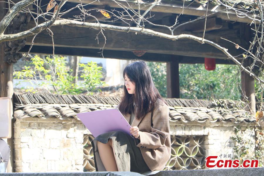 A student draws from nature at the Chaji village, Jingxian County, Xuancheng City, East China's Anhui Province, Nov. 9, 2002. (Photo: China News Service/Zhang Qiang)