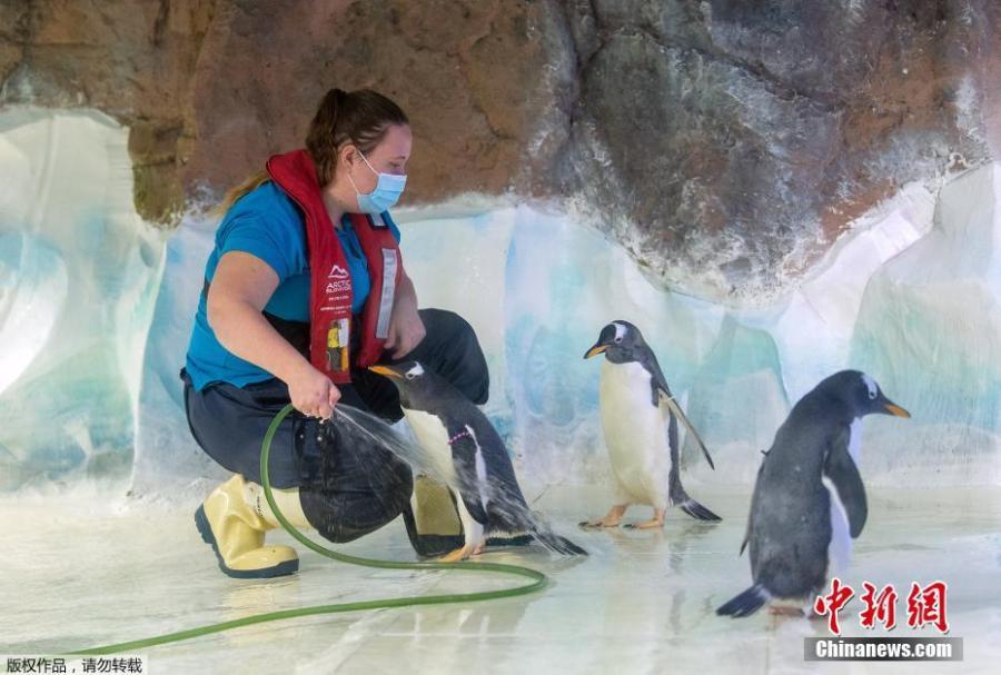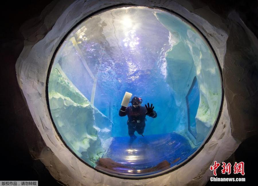 Photo shows staff at the National Sea Life Centre carring out maintenance work while the Birmingham attraction is closed to the public due to the Covid-19 lockdown, in Birmingham, UK, Nov. 17, 2020. (Photo/VCG)
